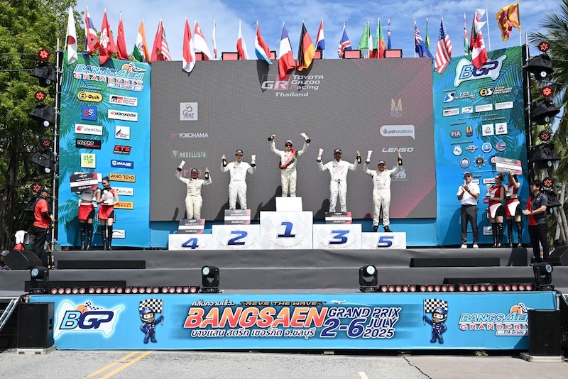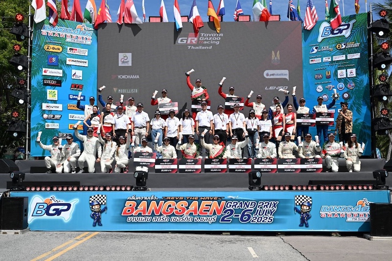 การแข่งขันรถยนต์ทางเรียบ Toyota Gazoo Racing Thailand สนามที่ 1 เปิดฤดูกาลแข่งขันอย่างยิ่งใหญ่ในรูปแบบ Street circuit ริมหาดบางแสน จ.ชลบุรี ในรายการแข่งขันระดับ FIA Grade 3 : “Bangsaen Grand Prix 2025” โดยมี มร.โนริอากิ ยามาชิตะ กรรมการผู้จัดการใหญ่ บริษัท โตโยต้า มอเตอร์ ประเทศไทย จํากัด พร้อมด้วย นายศุภกร รัตนวราหะ รองกรรมการผู้จัดการใหญ่ บริษัท โตโยต้า มอเตอร์ ประเทศไทย จํากัด ร่วมกับ นายสนธยา คุณปลื้ม ประธานจัดการแข่งขันรายการ บางแสน กรังด์ปรีซ์ และรายการ ไทยแลนด์ ซูเปอร์ ซีรีส์ ได้รับเกียรติจาก นายสรวงศ์ เทียนทอง รัฐมนตรีว่าการกระทรวงการท่องเที่ยวและกีฬา และ นายอำนาจ เจริญศรี รองผู้ว่าราชการจังหวัดชลบุรี พร้อมด้วย นายพฤฒิรัตน์ รัตนกุล เสรีเริงฤทธิ์ นายกสมาคมราชยานยนต์สมาคมแห่งประเทศไทย ในพระบรมราชูปถัมภ์ สมาคมกีฬา ร่วมทำพิธีเปิดการแข่งขันเมื่อวันที่ 5 กรกฎาคม ที่ผ่านมา