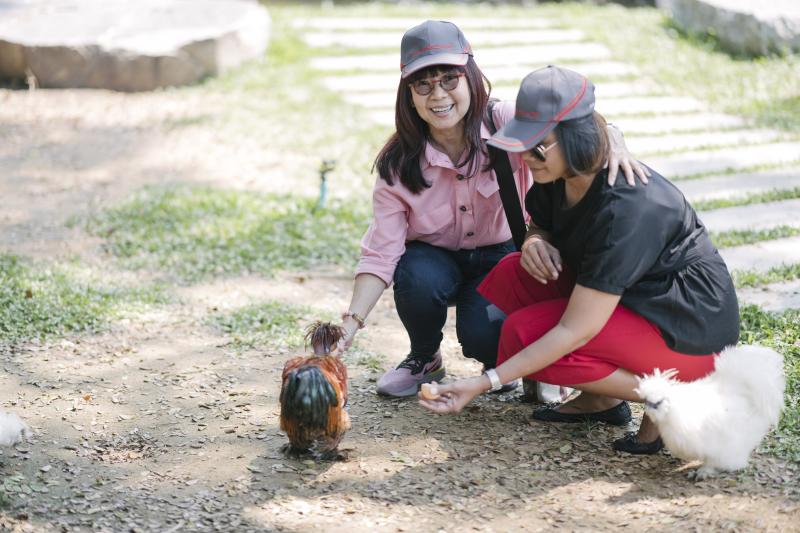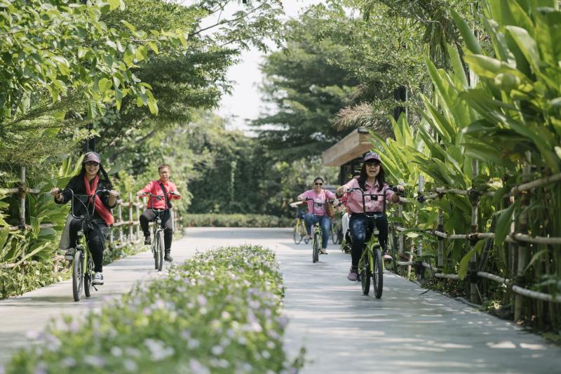 มาปั่นจักรยานตามเส้นทางธรรมชาติ ลัดเลาะไปตามโซนกิจกรรมต่างๆ พร้อมแวะให้อาหารในฟาร์มสัตว์เลี้ยงหลากชนิดทั้ง กระต่าย, ม้า, ควาย และไก่