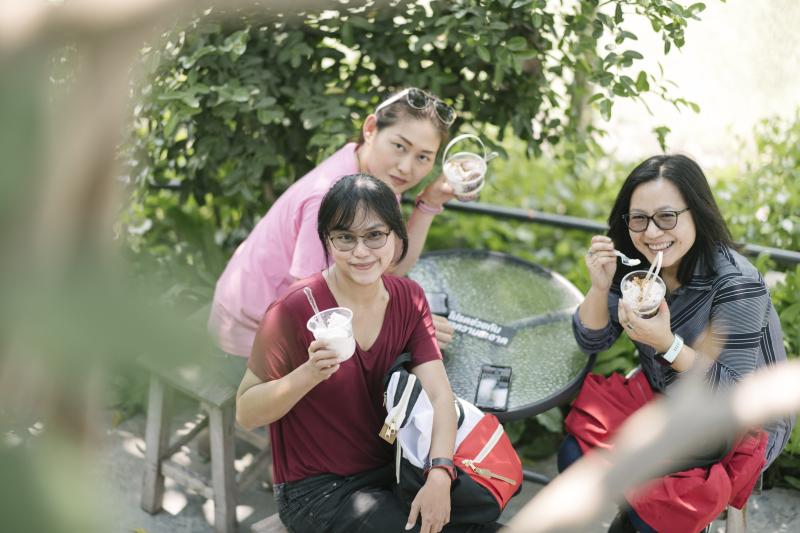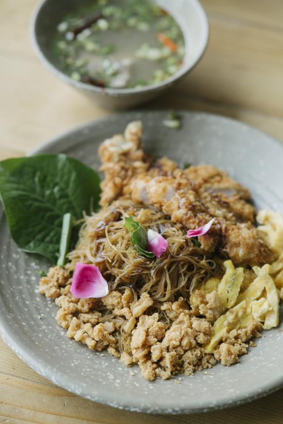 ในบรรยากาศที่โอบล้อมไปด้วยร่มเงาของต้นไม้ใหญ่และฝูงไก่พันธุ์ซิลค์กี้ขนปุกปุยสุดน่ารักที่เดินเล่นอวดโฉมให้เรานั่งมองอย่างเพลิดเพลินในขณะรับประทานอาหาร