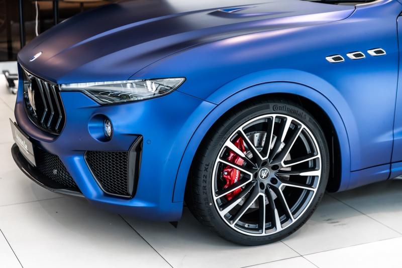 เส้นสายอันโดดเด่นของ เลอวานเต้ ถูกเพิ่มความสปอร์ตยิ่งขึ้นในรุ่น โทรเฟโอ ลอนช์ เอดิชั่น ตัวถังพ่นสีน้ำเงินด้าน ‘Blu Emozione Matte’ ผสานชุดแต่ง Nerissimo Package ติดตั้งไฟหน้าฟูลเมทริกซ์แอลอีดี กระจังหน้าทรงตั้งสีดำเปียโนแบล็ค พร้อมช่องดักลมแบบตาข่ายด้านล่าง ช่องดักอากาศด้านข้างบริเวณส่วนล่างของกระจังหน้า ปรับแต่งใหม่ให้มีรูปลักษณ์ดุดันขึ้น