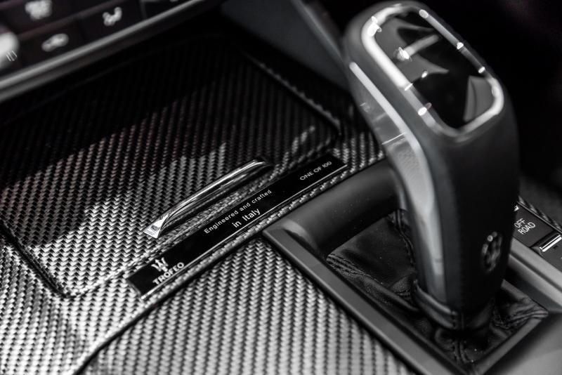 ห้องโดยสารสุดหรูและดูเป็นสปอร์ต ตกแต่งด้วยคาร์บอนไฟเบอร์ผิวด้าน ติดตั้งป้ายโลหะ ‘1 of 100’ บริเวณคอนโซลกลาง เพิ่มกราฟิก ‘Trofeo’ บนจอแสดงผลอเนกประสงค์ แสดงถึงความไม่ธรรมดา เบาะทรงสปอร์ตหุ้มหนังแท้ ‘Pieno Fiore’ มีให้เลือกทั้งสีดำ, แดง หรือน้ำตาลอ่อน เย็บตะเข็บด้วยเส้นด้ายสีตัดกัน พร้อมปักโลโก้ ‘Trofeo’ บริเวณหมอนรองศีรษะ ซึ่งหนังแท้ ‘Pieno Fiore’ มีคุณสมบัติโดดเด่น ต่างจากหนังทั่วไปที่ใช้ในรถยนต์ คือ ผิวที่นุ่มนวล และลวดลายธรรมชาติที่เกิดจากการสั่งสมนานนับปี พร้อมเพิ่มความสุนทรีย์ด้วยชุดเครื่องเสียงพรีเมียมเซอร์ราวด์ Bowers & Wilkins 17 ลำโพง 1,280 วัตต์