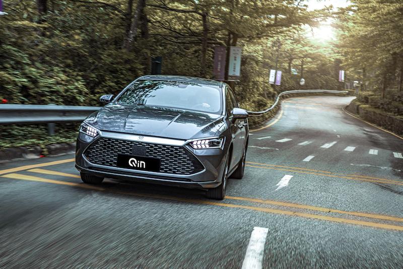 BYD QIN PLUS DMi เป็นรถซีดาน 4 ประตู 5 ที่นั่ง ขับเคลื่อนด้วยระบบ PHEV การออกแบบได้รับอิทธิพลมาจาก HAN กระจังหน้าทรง 6 เหลี่ยมขนาดใหญ่ ถูกเรียกว่า ‘Dragon Mouth’ ไฟหน้า Bi-LED ดีไซน์ประดุจตามังกร ขณะที่ไฟท้ายออกแบบเต็มพื้นที่ความกว้างท้ายรถ ให้ความรู้สึกเหมือนเล็บมังกร ห้องโดยสารโดดเด่นด้วยสีทูโทน เบาะนั่งคู่หน้าเป็นแบบ Bucket Seat ขณะที่เบาะนั่งแถวหลังก็ใช้ทรงสปอร์ตไม่แตกต่างกัน