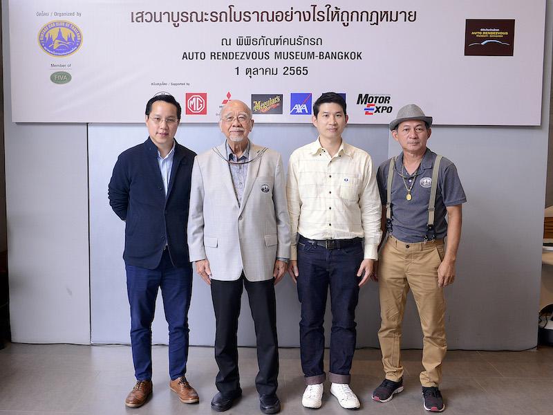 ขวัญชัย ปภัสร์พงษ์ นายกสมาคมรถโบราณแห่งประเทศไทย (ที่ 2 จากซ้าย) จัดงานคาราวานชานกรุง 2022 รวมพลคนรักรถโบราณกว่า 50 คัน พร้อมเชิญ เกียรติณรงค์ ครูบา หัวหน้ากลุ่มพลังงานและสิ่งแวดล้อม กรมการขนส่งทางบก (ที่ 3 จากซ้าย) มาให้ความรู้ผ่านการเสวนาเรื่อง บูรณะรถโบราณอย่างไรให้ถูกกฎหมาย ณ พิพิธภัณฑ์คนรักรถ Auto Rendezvous Museum-Bangkok เมื่อวันที่ 1 ตุลาคม 2565