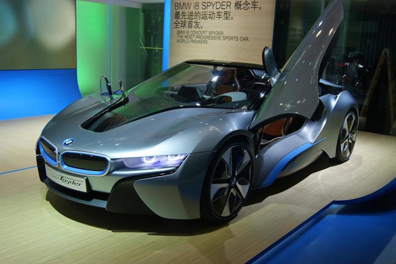 เรามาดูกันว่า ค่ายรถยนต์ เตรียมอะไรมาออกงานกันบ้าง เริ่มด้วย บีเอ็มดับบลิว นำเสนอ ไอ8 สไปเดอร์ i8 Spyder ที่คันต้นแบบออกโชว์ในงานที่ปักกิ่ง มอเตอร์ โชว์ เมื่อปี 2555 ก่อนจะออกขายจริงก่อนแล้ว พร้อมแสดงรายละเอียดว่ารถไฮบริด เครื่องยนต์เบนซิน-ไฟฟ้า คันนี้ จะสามารถทำอะไรได้บ้างกับเครือข่ายอินเตอร์เน็ต ด้วยแผนงาน IOT หรือ Internet of Things