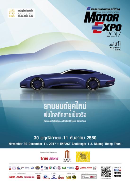 พลาดไม่ได้กับงาน “มหกรรมยานยนต์ ครั้งที่ 34” ณ อาคารชาเลนเจอร์ IMPACT เมืองทองธานี ระหว่างวันที่ 30 พฤศจิกายน – 11 ธันวาคม 2560 สามารถติดตามข่าวสารเพิ่มเติมได้ทาง http://www.motorexpo.co.th และ http://www.facebook.com/motorexpo
