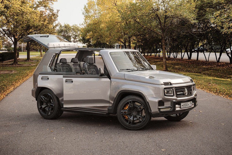 จี-คลาส มินิ ลอกเลียนแนวทางของรุ่นพี่ จี-คลาส แต่ไม่มีเสากลาง พร้อมทั้งหลังคาแก้ว ที่ถอดออกได้ ซึ่งเมื่อถึงขั้นสายการผลิต อาจมีการเปลี่ยนแปลงในจุดนี้