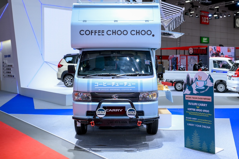 สำหรับโซนการจัดแสดงรถตกแต่งพิเศษ ยังคงคับคั่งไปด้วยไอเดียการตกแต่งที่หลากหลาย นำเสนอแนวทางสำหรับลูกค้าที่ชื่นชอบการตกแต่งรถที่ไม่เหมือนใคร โดยภายในงานครั้งนี้ ซูซูกิ นำ SUZUKI CARRY รถกระบะบรรทุกอเนกประสงค์มาตกแต่ง เพื่อสร้างแรงบันดาลใจในการทำธุรกิจให้แก่ผู้ประกอบการพัฒนาต่อยอดภายใต้แนวคิด Work from Anywhere ด้วยการนำ SUZUKI CARRY มาตกแต่งในรูปแบบรถบ้าน แต่เหนือระดับและตอบโจทย์ในชีวิตให้มากขึ้น ด้วยการเป็นรถที่สามารถเดินทางท่องเที่ยวพร้อมกับการทำธุรกิจร้านกาแฟไปได้พร้อมๆ กัน