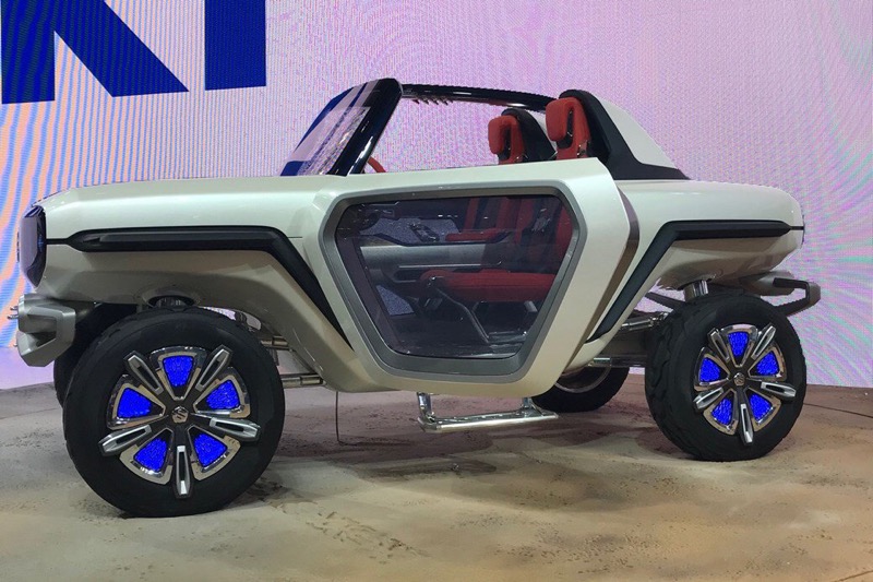 ซูซูกิ ทำรถยนต์ไฟฟ้าคันนี้เป็นต้นแบบ เพื่อการขับขี่แถบชายหาด รับลมทะเล แม้ว่าจะรูปทรงแบบดั้งเดิม แต่ขยายความกว้างและความยาวออกเล็กน้อย ติดตั้งเทคโนโลยีใหม่ๆ มากมาย ยกตัวถังขึ้นสูงจากพื้น พร้อมกะทะล้อทรงแปลกตา เติมด้วยสีเขียวด้านใน เพื่อย้ำเตือนว่าเป็นรถที่รักษ์สิ่งแวดล้อม ติดตั้งมอเตอร์ที่ดุมล้อทั้งสี่ เพื่อการขับเคลื่อนสี่ล้อ