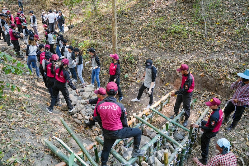 พร้อมกันนี้ นิสสัน ยังได้นำทีมพนักงานของบริษัทร่วมกับพนักงานของผู้จำหน่ายฯ ในพื้นที่ ร่วมกันสร้างฝายชะลอน้ำที่ บ้านแม่ตะไคร้ อ. แม่อร เพื่อเพิ่มความชุ่มชื้นระยะยาวให้แก่ผืนป่า จ. เชียงใหม่ ซึ่งเป็นจุดที่มีการเกิดไฟป่าบ่อยครั้ง โดยเมื่อพ้นฤดูกาลไฟป่าไปแล้ว ฝายชะลอน้ำแห่งนี้ยังจะช่วยสนับสนุนการฟื้นฟูป่าและธรรมชาติโดยรอบอีกด้วย