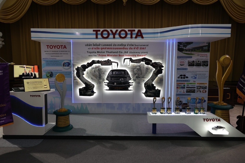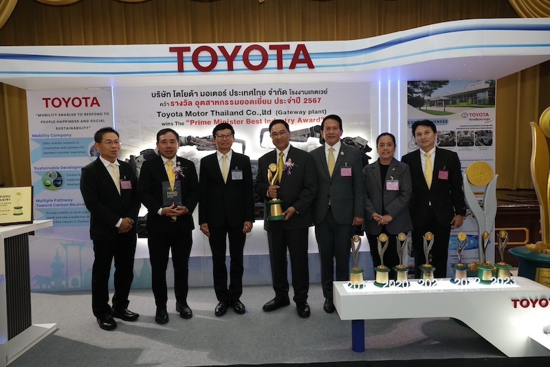 บริษัท โตโยต้า มอเตอร์ ประเทศไทย จำกัด โดย “โรงงานโตโยต้าเกตเวย์ จ.ฉะเชิงเทรา” ได้รับรางวัลอุตสาหกรรมยอดเยี่ยมประจำปี 2567 และรางวัลอุตสาหกรรมดีเด่น ประเภทอุตสาหกรรมและบริการแห่งอนาคต (The Prime Minister’s Industry Award 2024: Manufacturing & Service of the future)” พร้อมรับรางวัลพิเศษ ทูตอุตสาหกรรมภาคเอกชน MIND Ambassador โดยได้รับเกียรติจาก มร. อากิโอะ โตโยดะ ประธานคณะกรรมการบริหาร บริษัท โตโยต้า มอเตอร์ คอร์ปอเรชั่น ประเทศญี่ปุ่น นายกลินท์ สารสิน ประธานคณะกรรมการ นายโนริอากิ ยามาชิตะ กรรมการผู้จัดการใหญ่ และคณะผู้บริหารจาก บริษัท โตโยต้า มอเตอร์ ประเทศไทย จำกัด เข้ารับรางวัลจาก นางสาวแพทองธาร ชินวัตร นายกรัฐมนตรี ที่ให้เกียรติเป็นประธานในพิธีมอบรางวัลอุตสาหกรรม ประจำปี 2567 ซึ่งจัดโดยกระทรวงอุตสาหกรรม ณ ตึกสันติไมตรี ทำเนียบรัฐบาล เมื่อวันที่ 18 ธันวาคม 2567