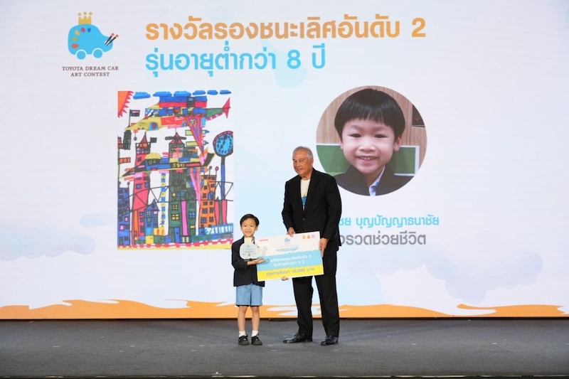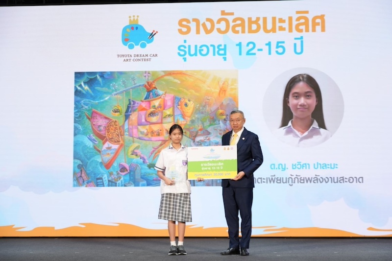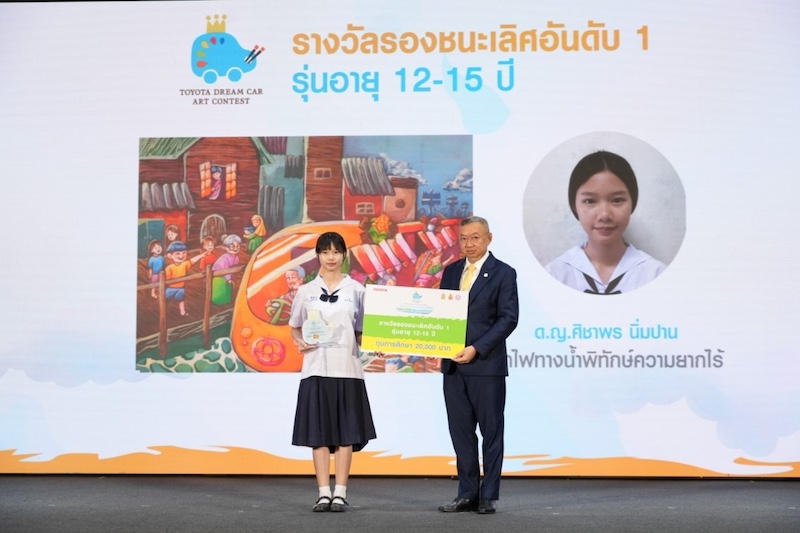 ที่ได้รับพระราชทานพระวโรกาสจาก สมเด็จพระกนิษฐาธิราชเจ้า กรมสมเด็จพระเทพรัตนราชสุดา เจ้าฟ้ามหาจักรีสิรินธรฯ สยามบรมราชกุมารี ทรงพระราชทานถ้วยรางวัลแก่ผู้ชนะการประกวด TOYOTA Dream Car Art Contest 2024 ในระดับประเทศ