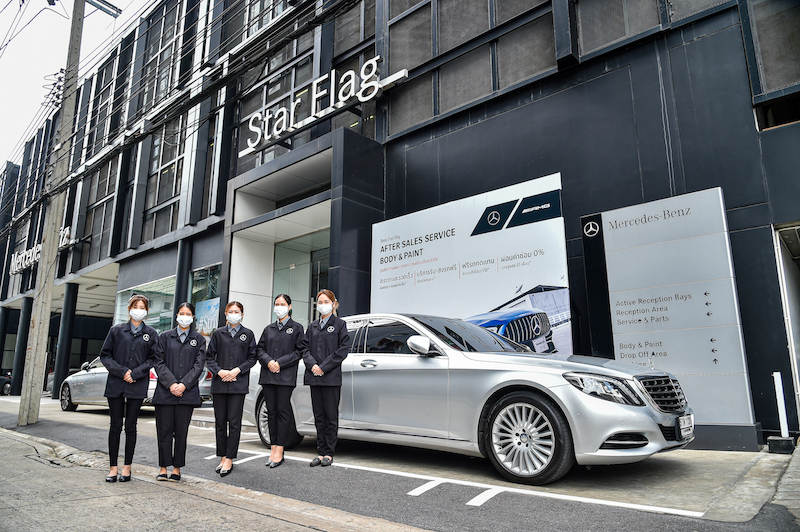 เบนซ์ สตาร์แฟลก ให้ความสำคัญกับงานขายและบริการหลังการขาย ใส่ใจทุกรายละเอียด และมีการพัฒนาอย่างต่อเนื่อง เพื่อมอบประสบการณ์ประทับใจให้ลูกค้า ส่งผลให้ได้รับรางวัล Global Customer Experience 2021 จาก Mercedes-Benz (Thailand) การันตีถึงคุณภาพและมาตรฐานการเอาใจใส่ นายภูมิศักดิ์ โพธิพิพิธ ผู้จัดการทั่วไปฝ่ายบริการหลังการขาย กล่าวว่า “เรายึดหลัก ทำทุกอย่างให้เป็นเรื่องง่าย เพื่ออำนวยความสะดวกให้กับลูกค้าสูงสุด เช่นถ้าลูกค้าไม่สะดวกมาที่ศูนย์เรา เรามีบริการรับและส่งรถ ถ้าซ่อมหลายวันเรามีบริการรถทดแทน อีกทั้งสามารถ ผ่อนชำระ 0% 10 เดือน เป็นต้น มั่นใจว่าจะรักษาความเป็นแชมป์ที่หนึ่งในใจลูกค้าปีนี้และปีหน้าได้อย่างแน่นอน โดยปัจจุบันสามารถรองรับรถเข้าซ่อมได้อย่างเพียงพอถึง 50 คัน และ ของ AMG อีก 5 ช่องซ่อม เพื่อรองรับลูกค้านำรถเข้ามาตรวจเช็คระยะสำหรับขับท่องเที่ยวในปีใหม่ ขณะที่ในการบริการทั้งงานซ่อมและงานสี มีการลงทุนในอุปกรณ์ที่ทันสมัย เพื่อให้ทุกการบริการได้มาตรฐานที่ดีและส่งคืนรถใด้รวดเร็ว