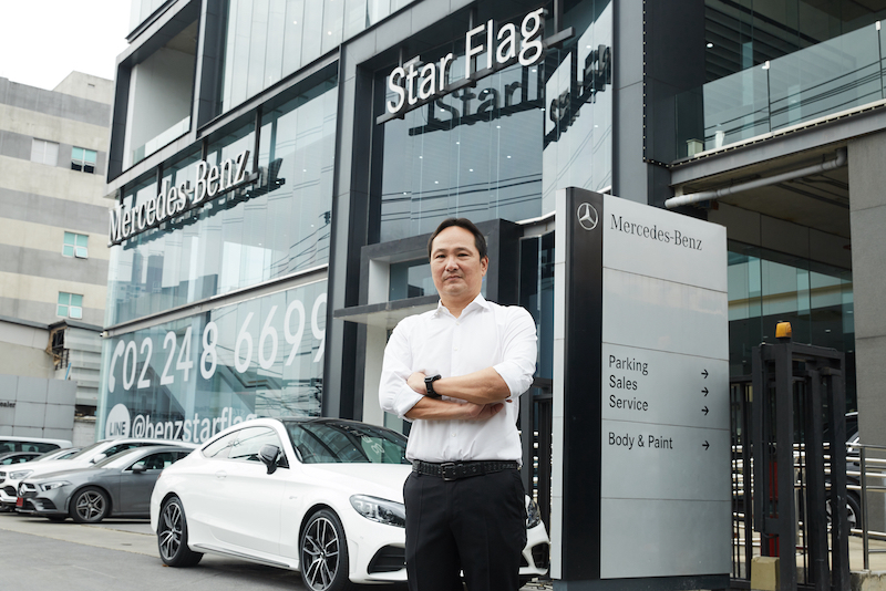 “จากความชื่นชอบรถและการแข่งรถเป็นชีวิตจิตใจ อีกทั้งประสบการณ์ตรงในสนามแข่งกว่ายี่สิบปีของผม อาจเรียกว่าเป็นจุดแข่งและจุดเด่นที่ทำให้รูปแบบการนำเสนอผลิตภัณฑ์ให้ลูกค้าของ เบนซ์ สตาร์แฟลก ไม่เหมือนใคร คือเราไม่เพียงใส่ใจในรายละเอียด เข้าใจโจทย์ความต้องการของลูกค้า แต่เรายังแชร์แรงบันดาลใจในการขับขี่ สมรรถนะ ความรื่นรมย์ในการขับรถแต่ละรุ่น ทำให้ลูกค้ารู้ความต้องการที่แท้จริง ก่อนตัดสินใจ ทั้งรุ่นพิเศษ สี ออฟชั่นส์ ชุดแต่ง รวมถึงแคมเปญพิเศษที่ทำให้ลูกค้าสัมผัสได้ถึงความคุ้มค่าที่มากกว่าเมื่อออกรถกับ เบนซ์ สตาร์แฟลก ทำให้ที่ผ่านมา เราได้ลูกค้าจากการบอกต่อ แนะนำเพื่อน หรือครอบครัว ให้มาซื้อรถกับ เบนซ์ สตาร์แฟลก อยู่เสมอ ซึ่งต้องขอบคุณลูกค้าทุกท่าน ที่ให้ความไว้วางใจ”