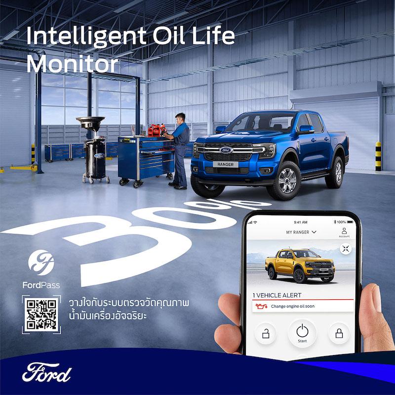 ในการเปิดตัวรถฟอร์ด เจเนอเรชันใหม่ ในประเทศไทย ฟอร์ดได้เดินหน้ายกระดับประสบการณ์ใช้งานของลูกค้า ด้วยการต่อยอดบริการที่มีอยู่เดิมไปสู่นวัตกรรมบริการแบบ Always-On ผ่านแอปพลิเคชัน FordPass โดยลูกค้าสามารถเช็กอายุการใช้งานน้ำมันเครื่องได้อย่างสะดวกและง่ายดาย ผ่านระบบตรวจวัดคุณภาพน้ำมันเครื่องอัจฉริยะ (Intelligent Oil Life Monitor – IOLM) ที่จะแจ้งเตือนบนหน้าปัดรถยนต์เมื่อถึงเวลาเปลี่ยนถ่ายน้ำมันเครื่องและไส้กรอง ระบบ IOLM ได้รับการออกแบบมาให้สามารถประมวลผลข้อมูลจากเซ็นเซอร์ในเครื่องยนต์และรูปแบบการขับขี่ได้อย่างแม่นยำ โดยแอปพลิเคชัน FordPass และหน้าปัดรถจะแสดงข้อความ ‘Change Engine Oil Soon’ เมื่อคุณภาพน้ำมันเครื่องลดลงเหลือ 5% ซึ่งลูกค้าสามารถเปลี่ยนถ่ายน้ำมันเครื่องเมื่อระดับคุณภาพน้ำมันเครื่องแสดงผลตั้งแต่ 30% ลงมา เพิ่มความสะดวกสบายพร้อมปกป้องเครื่องยนต์จากการใช้น้ำมันเครืองที่เสื่อมสภาพ โดยฟอร์ดมีคูปองฟรีค่าแรงบริการเปลี่ยนถ่ายน้ำมันเครื่องให้ 5 ครั้ง ไม่เกิน 72 เดือนหรือ 85,000 กิโลเมตร (แล้วแต่อย่างใดอย่างหนึ่งถึงก่อน)