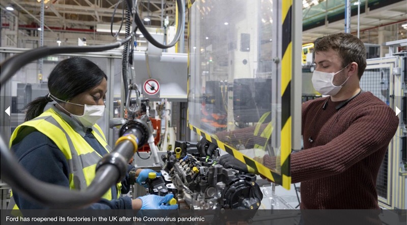 ฟอร์ด เปิดสายการผลิต และพบว่ามีพนักงาน 2 คน เชื้อเป็น บวก ต้องปิดโรงงานไปครั้งหนึ่ง เมื่อวันอังคาร แต่โฆษก ยืนยันว่า โรงงานทั้งสองแห่ง จะสามารถเปิดดำเนินการได้ภายในวันพฤหัสบดี เนื่องจาก ผู้ที่ติดเชื้อ ไม่ได้ทำงานอยู่ในสายการผลิต