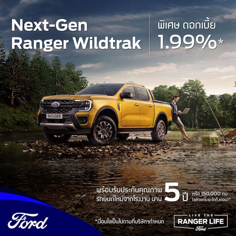 - ดอกเบี้ยพิเศษ 1.99 % สำหรับฟอร์ด เรนเจอร์ เจเนอเรชันใหม่ รุ่นแร็พเตอร์, ไวลด์แทร็ก, สปอร์ต และ ดับเบิลแค็บ XLT