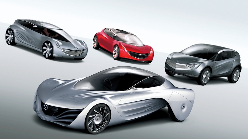 จาก นากาเร่ ดีไซน์ (Nagare’) สู่ โคโดะ ดีไซน์ ที่ถูกรังสรรขึ้นจากเส้นสายความพลิ้วไหวตามธรรมชาติ การเคลื่อนที่อย่างคล่องแคล่ว แข็งแรง ดั่งนักกีฬา การพัฒนาปรัชญาการออกแบบ นากาเร่ มีความหมายว่า ความต่อเนื่อง ไหลลื่น เป็นธรรมชาติ โดยนำเอาความสวยงามของธรรมชาติที่เกิดจากการเคลื่อนไหวของสรรพสิ่งในธรรมชาติในหลากหลายลักษณะ ความพิถีพิถันการออกแบบเส้นสายที่ลื่นไหลต่อเนื่องของธรรมชาติผสมผสานเข้ากับการขึ้นรูปของตัวรถ การไหลอย่างต่อเนื่องของสรรพสิ่งในธรรมชาติ อาทิ กระแสลม น้ำ การเปลี่ยนรูปของทรายบนเนินทรายที่เกิดจากกระแสลม สายธาร ลาวา เป็นต้น มาสด้าได้นำเอาความสวยงามจากภาพของความเคลื่อนไหวอย่างต่อเนื่องไหลลื่น เหล่านั้น มาประยุกต์ใช้เป็นการยกระดับของงานดีไซน์ ภายใต้แนวทางการออกแบบ นากาเร่ มาสด้าได้ออกแบบรถต้นแบบทั้งสิ้น 7 คัน หลังจากนั้นได้นำมาใช้กับการออกแบบรถมาสด้าและเป็นรถที่ผลิตเพื่อการจำหน่ายจริง