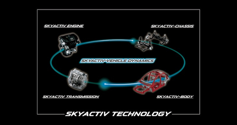 - เครื่องยนต์สกายแอคทีฟเบนซิน SKTYACTIV-G ให้สมรรถนะความแรงและประหยัดน้ำมัน โดยฉีดเชื้อเพลิงโดยตรงเข้าสู่ห้องเผาไหม้อย่างมีประสิทธิภาพ ทำให้มีอัตราส่วนการอัดสูงที่สุดในโลก คืออัตรา 14.0:1 ช่วยให้ประหยัดนํ้ามัน มีแรงบิดดีขึ้น และเป็นมิตรกับสิ่งแวดล้อม