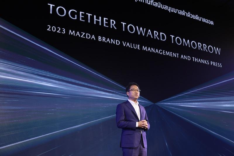 ทางด้านประธานบริหารมาสด้า มร. ทาดาชิ มิอุระ ที่เข้ามาดำรงตำแหน่งครบหนึ่งปีเต็ม กล่าวว่า มาสด้าขอขอบคุณลูกค้าชาวไทยเป็นอย่างสูงที่ไว้วางใจในผลิตภัณฑ์และสนับสนุนมาสด้าเป็นอย่างดี นับตั้งแต่ปี 2565 ที่ผ่านมา มาสด้ากำหนดแนวทางในดำเนินธุรกิจใหม่เพื่อสร้างการเติบโตทางธุรกิจอย่างยั่งยืนภายใต้โมเดลธุรกิจ Retention Business Model สร้างประสบการณ์ที่ดีที่สุดให้กับลูกค้าในทุก Touchpoints ส่งมอบการบริการที่เป็นเลิศแบบครบวงจร ตั้งแต่ก่อนการขายจนถึงการบริการหลังการขาย ให้ความสำคัญสูงสุดกับการสร้างคุณค่าแบรนด์และสร้างความผูกพันกับลูกค้าในระยะยาว นับเป็นนโยบายสำคัญที่มาสด้ายึดถือเป็นแนวทางปฏิบัติ และส่งมอบให้กับลูกค้าในประเทศไทยและทั่วโลก โดยในปีที่ผ่านมาถือว่าประสบความสำเร็จได้รับเสียงตอบรับที่ดีจากลูกค้าและแฟนมาสด้า รวมถึงผู้จำหน่ายด้วยเช่นกัน