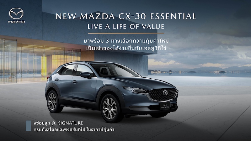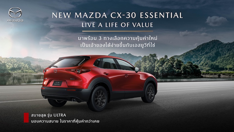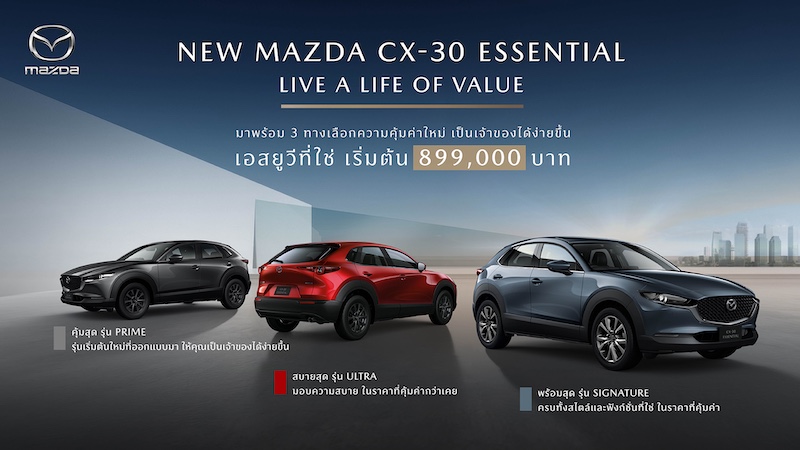 มาสด้าเปิดตัว NEW MAZDA CX-30 ESSENTIAL จัดสรรอุปกรณ์ใหม่ เพิ่มรุ่นเริ่มต้นปรับไลน์อัพใหม่ ใส่เทคโนโลยีสกายแอคทีฟเต็มคัน ราคาใหม่ 899,000 บาท คุ้มค่าเกินราค