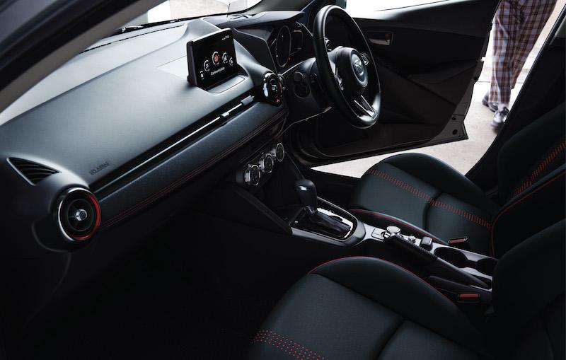 - New Mazda2 มาพร้อมกับ 2 ดีไซน์ใหม่ ประกอบด้วย Sport Design ที่ส่งผ่านความสปอร์ตโฉบเฉี่ยวได้อย่างชัดเจน ด้วยกันชนหน้า พร้อมกระจังหน้าแบบ Mesh Grille ดีไซน์ใหม่ ยกระดับความสปอร์ตด้วยกระจกมองข้างและหลังคาสีดำ ที่เข้ากับความสปอร์ตของกระจังหน้าได้อย่างลงตัว และมาพร้อมกับล้อ ขนาด 16 นิ้ว ดีไซน์ใหม่ ที่ยกระดับความสปอร์ตหรูขึ้นไปอีกขั้น ในขณะที่ภายในมอบความสปอร์ตพรีเมี่ยมด้วยเบาะหนังสีดำสลับกับผ้า Grand Luxe Suede® แบบสปอร์ตดีไซน์ใหม่ ให้ความประณีตด้วยวัสดุคุณภาพสูง พร้อมเพิ่มความสปอร์ตให้กับดีไซน์ภายในด้วยการตกแต่งสีแดงที่กรอบช่องแอร์ และเบาะนั่งเดินตะเข็บสีแดง เพื่อตอบโจทย์คนรุ่นใหม่ที่มองหารถสปอร์ตที่ทั้งขับสนุกและมีเอกลักษณ์ในตัวเองอย่างชัดเจน