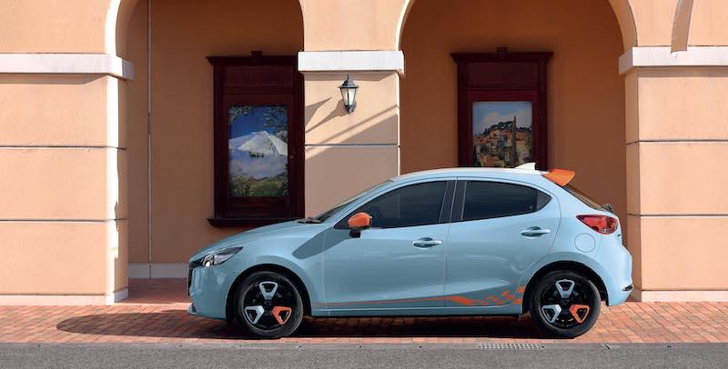 - เพื่อเป็นการสร้างสีสันและความสดใสขึ้นไปอีกขั้น New Mazda2 ยังมาพร้อมรุ่นพิเศษอีก 2 รุ่น ได้แก่ Rookie Drive ที่เพิ่มความแตกต่างโดดเด่นกับดีไซน์ภายนอก ไม่ว่าจะเป็น กระจังหน้าดีไซน์ใหม่สีขาว หลังคาสีขาวหรือสีดำที่ออกแบบแตกต่างตามสีภายนอก พร้อมแสดงออกถึงบุคลิกไม่ซ้ำแบบใครจากการตกแต่งด้วยสีส้ม Racing Orange บนชุดสปอยเลอร์หลัง ชุดครอบกระจกมองข้าง คิ้วตกแต่งกันชนหน้าและกันชนหลัง รวมถึงฝาครอบล้อ พร้อมชุดสติกเกอร์ตกแต่งดีไซน์พิเศษ