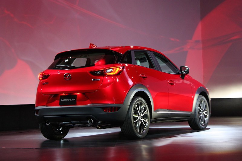 มาสด้า เปิดตัวครอสโอเวอร์ ซีเอ็กซ์-3 CX-3 รุ่นปี 2559 ในงาน ลอส แอนเจลีส ออโต้ โชว์ ด้วยเส้นสายการออกแบบสไตล์ คูโด ดีไซน์ KODO design ที่ทำให้ดูหน้าตาเหมือนกันไปหมด แตกต่างกันแต่ขนาดของตัวรถเท่านั้น กระจังหน้าทรง 5 เหลี่ยม ไฟส่งสว่างหน้าทรงเรียว แถมด้วยไฟหรี่ ทรงแปลกตา แต่โดยภาพรวมก็ทำให้รู้สึกได้ว่าสะอาด สวยงาม และทันสมัย เส้นด้านข้าง ก็ยกสูง ทำให้ขอบกระจกสูงขึ้นตาม แต่มาสด้า ก็เลือกใช้กรอบประตูสีดำ ตัดสีแดงของตัวรถ ให้ดูเก๋ ส่วนไฟด้านท้ายทรงเรียว ดูคล้าย มาสด้า2 พร้อมสปอยเลอร์บนหลังคา