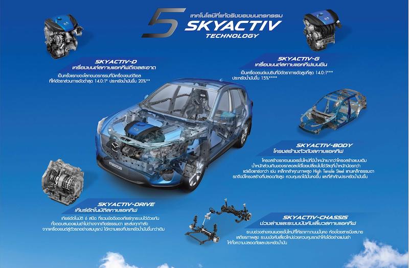 อะไรคือปัจจัยสำคัญที่ทำให้มาสด้า CX-5 ประสบความสำเร็จมากมายเช่นนี้ แน่นอนว่า เกิดจากการนำเอาความสมบูรณ์แบบของเทคโนโลยีสกายแอคทีฟแพลตฟอร์มเจเนอเรชั่นใหม่ที่มาสด้าคิดค้นขึ้น เพื่อพัฒนาสมรรถนะของรถและเครื่องยนต์ที่ให้พละกำลังแรงแต่ประหยัดน้ำมัน มาผนวกเข้ากับการทำงานร่วมกันระหว่างเครื่องยนต์ ระบบเกียร์ โครงสร้างตัวถัง และแชสซี ไว้ด้วยกัน เพื่อให้ทุกส่วนทำงานประสานสอดคล้องกันและเกิดประสิทธิภาพสูงสุด พร้อมกับการศึกษาเชิงสรีระ และธรรมชาติการเดินของมนุษย์มาประยุกต์ใช้เพื่อเพิ่มความเป็นหนึ่งเดียวกันระหว่างคนกับรถที่สมบูรณ์แบบ และมอบความสะดวกสบายให้ผู้โดยสารตลอดการเดินทาง ด้วยเทคโนโลยีสกายแอคทีฟที่สร้างชื่อให้มาสด้า CX-5 ประกอบด้วยหัวใจหลักสำคัญดังต่อไปนี้