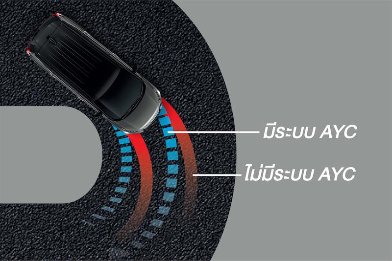 ตอกย้ำความเป็นรถเอสยูวีพรีเมี่ยมที่พร้อมสำหรับทุกเส้นทางและทุกสีสันของชีวิต ด้วยระบบการขับขี่ใหม่ที่ช่วยยกระดับความสะดวกสบายและความปลอดภัย โดดเด่นด้วยเทคโนโลยีช่วยเสริมความปลอดภัยขณะเข้าโค้ง “เอวายซี” (Active Yaw Control: AYC) ของมิตซูบิชิ มอเตอร์ส ที่ช่วยควบคุมการขับเคลื่อนให้เข้าโค้งได้กระชับแม่นยำ ปลอดภัยกว่าด้วยการควบคุมการขับเคลื่อนและการเบรกของล้อหน้าด้านซ้ายและด้านขวา เพิ่มสมรรถนะการเข้าโค้งและรักษาเสถียรภาพการขับขี่ได้ดีบนถนนที่เปียกลื่น