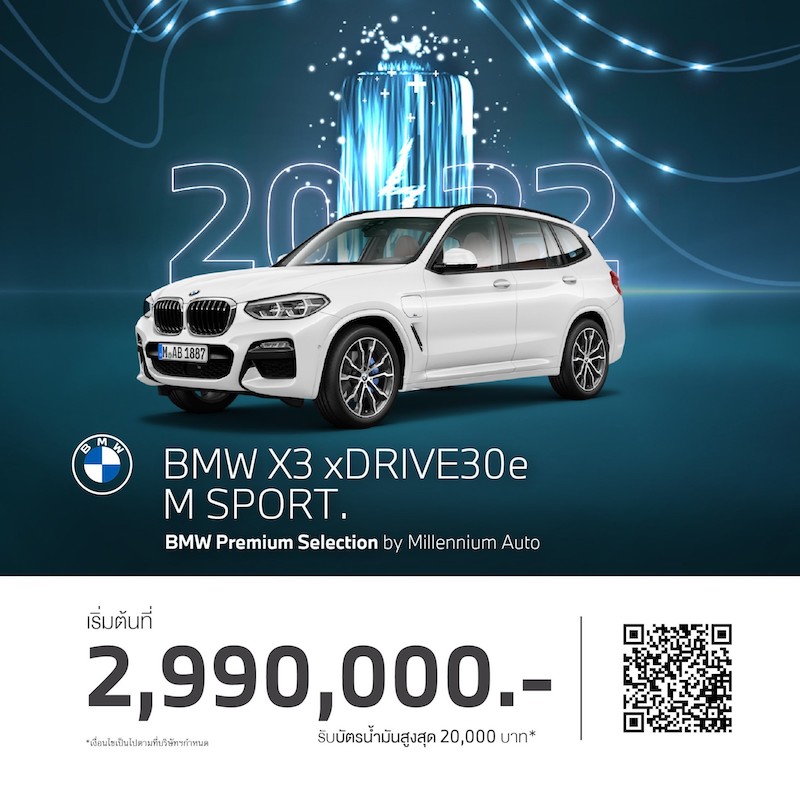 - BMW X3 xDrive30e M Sport เริ่มต้น 2.99 ล้านบาท