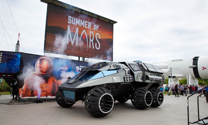 คราวที่ไปเยือนดวงจันทร์ นั่น มนุษย์อวกาศมีพาหนะเป็นรถโรเวอร์ ความยาวเพียง 10.2 ฟุต รับนำ้หนักเพียง 490 กก. แต่พาหนะสำหรับมนุษย์โลกที่จะไปเยือนดาวอังคารหนนี้ ได้มีการปรับปรุงกันใหม่ โดยเปิดตัวกันไปแล้ว ที่ เคนเนดี้ สเปซ เซ็นเตอร์ Kennedy Space Center ในฟลอริดา เป็นรถต้นแบบ 6 ล้อ ผลิตโดยสตูดิโอออกแบบ ปาร์คเกอร์ บราเธอร์ Parker Brothers ที่มีผู้นำชื่อ ชานอน ปาร์คเกอร์ Shanon Parker และ มาร์ค Marc แต่หนนี้เป็นรถขนาดใหญ่ ยาว 28 ฟุต สูง 11 ฟุต มีห้องโดยสารที่ปิดมิดชิด พร้อมทั้งห้องปฏิบัติการ ที่จะสามารถตรวจสอบสิ่งที่พบได้โดยทันที