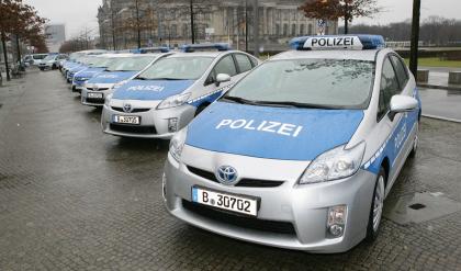 ข้ามมาที่กรุงเบอร์ลิน กรมตำรวจเบอร์ลิน เลือกใช้ โตโยต้า พริอุส Toyota Prius ประจำการ ด้วยเครื่องยนต์ 1.8 ลิตร ให้กำลัง 134 แรงม้า ทำความเร็ว 0-100 ภายใน 10.1 วินาที ความเร็วสูงสุด 180 กม./ชม.