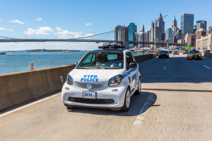 ย้อนกลับมาในอเมริกา กรมตำรวจนิวยอร์ค ใช้รถ สมาร์ทฟอร์ทู Smart Fortwo เครื่องยนต์ 0.9 ลิตร ให้กำลัง 89 แรงม้า ทำความเร็ว 0-100ได้ภายใน 10.4 วินาที ความเร็วสูงสุด 150 กม./ชม.