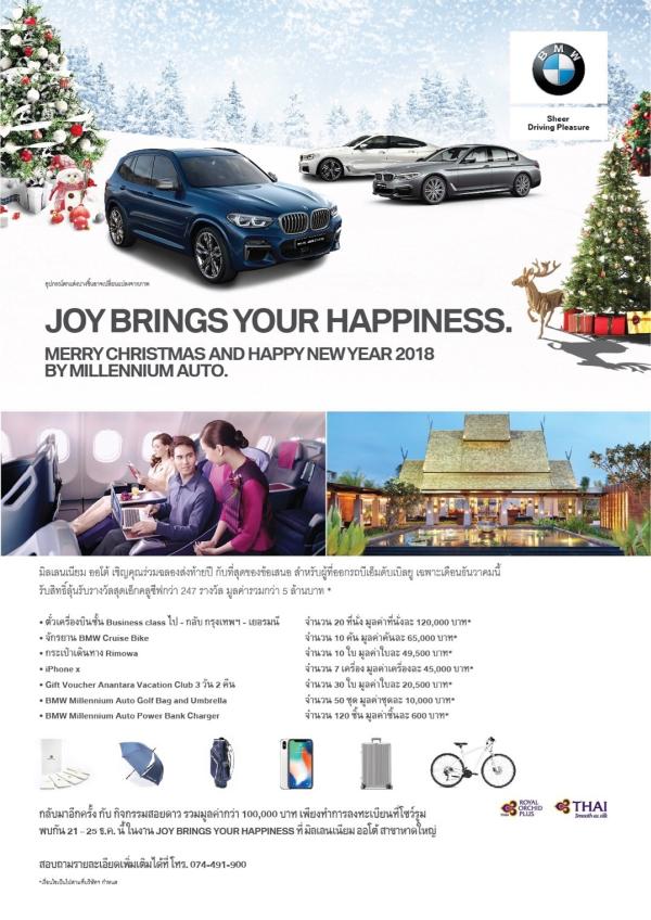 พร้อมกันนี้ยังได้จัดกิจกรรมพิเศษ “ เมอร์รี่คริสต์มาส&แฮปปี้นิวเยียร์ 2018 by มิลเลนเนียมออโต้ ( Merry Christmas and Happy New Year 2018 by MILLENNIUM AUTO) ระหว่างวันที่ 21-25 ธันวาคมศกนี้ ที่โชว์รูมBMW มิลเลนเนียม ออโต้ ที่โชว์รูมพระราม4 และสาขาในหัวเมืองใหญ่ทั่วประเทศ ได้แก่ อุบลราชธานี หาดใหญ่และภูเก็ตทั้ง 7 สาขา รวมถึง บีเอ็มดับเบิลยู สตูดิโอ มิลเลนเนียม ออโต้ ที่เซ็นทรัลพลาซ่า สุราษฎร์ธานี
