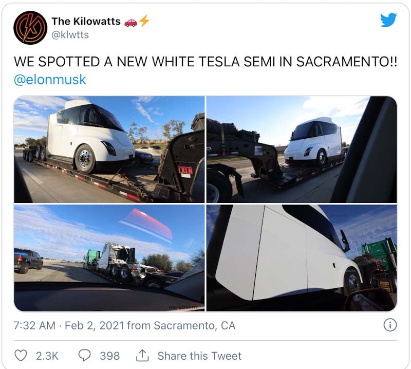 แต่จากรายงานของเทสล่า ต่อตลาดหลักทรัพย์ ระบุว่า รถหัวลาก เทสล่า พร้อมข้ึนสายการผลิตได้แล้ว แต่ยังไม่สามารถยืนยันจำนวนที่แน่นอนได้ เนื่องจากจำนวนของการผลิตชุดแบตเตอรี่ใหม่ 4680 ยังไม่ลงตัว เพราะอยู่ระหว่างการพัฒนา