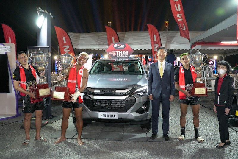 เดินทางมาถึงรอบชิงชนะเลิศเป็นที่เรียบร้อยสำหรับศึก THAI FIGHT 2023 โดยมี มร. ทาคาชิ ฮาตะ กรรมการผู้จัดการ บริษัท ตรีเพชรอีซูซุเซลส์ จำกัด แสดงความยินดีกับ 3 สุดยอดนักชกผู้คว้าแชมป์ THAI FIGHT 2023 ในงาน THAI FIGHT หลวงปู่ทวด รับถ้วยพระราชทานพระบาทสมเด็จพระเจ้าอยู่หัว และรถปิกอัพ “ใหม่! อีซูซุ ดีแมคซ์ ไฮแลนเดอร์ 1.9 ดีดีไอ รุ่น 2 ประตู พร้อมเงินสด มูลค่ารวมกว่า 4 ล้านบาท ณ ลานกิจกรรมพุทธอุทยานมหาราช วัดวชิรธรรมาราม จังหวัดพระนครศรีอยุธยา