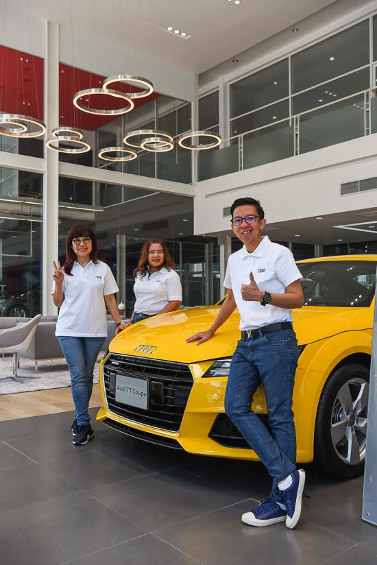 AUDI TT ที่ไปในทริปนี้มี 2 คัน ผู้หญิงได้ขับทั้งสองคัน แต่เป็นสีขาวกับสีดำนะคะ ไม่ใช่คันสีเหลืองที่โชว์อยู่บนโชว์รูม