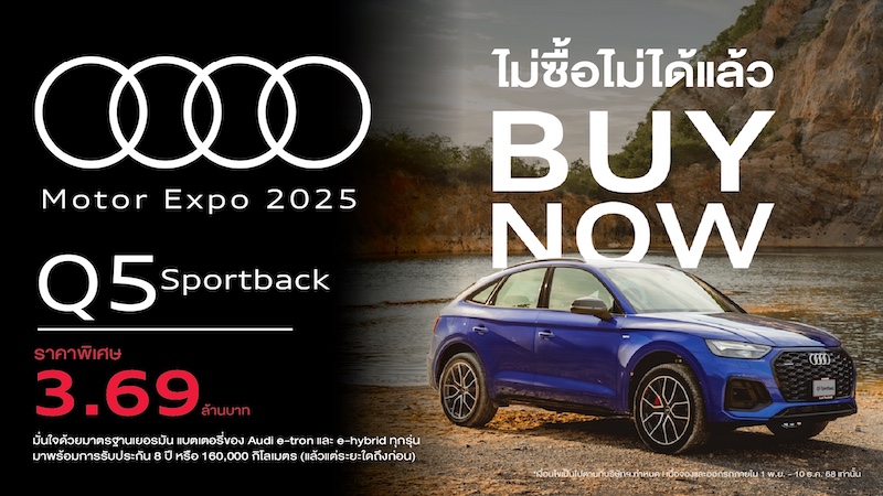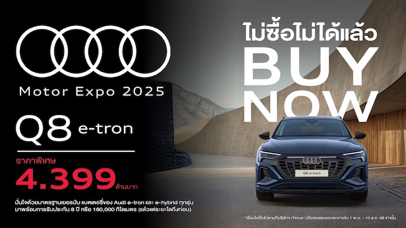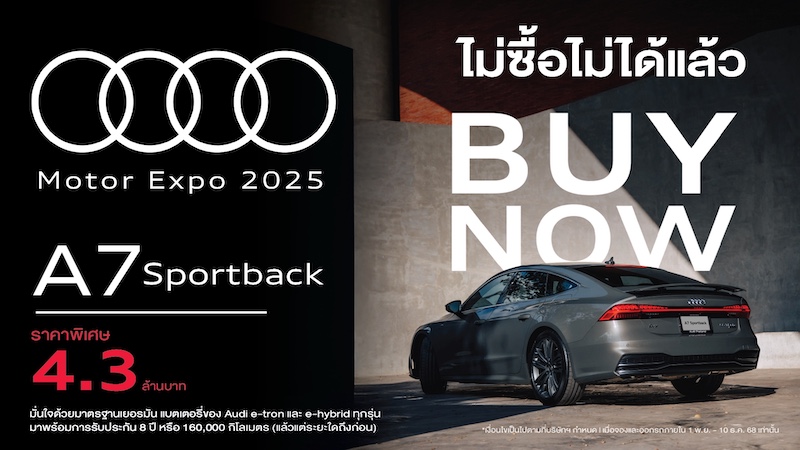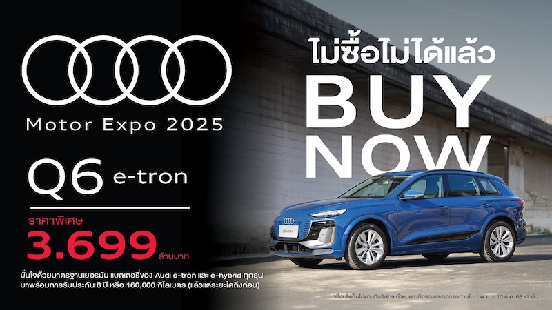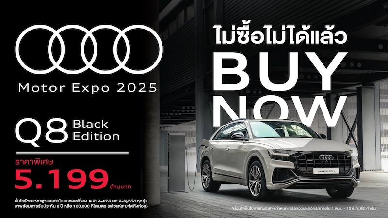 แคมเปญ Audi Motor Expo 2025 คือโอกาสทองของลูกค้า ก่อนปรับราคาขึ้นตามภาษีใหม่ในต้นปีหน้า โดยลูกค้าสามารถมาชม ทดลองขับ และจอง Audi ทุกรุ่น ที่โชว์รูม Audi ทั่วประเทศ และชมรถอาวดี้คันจริงได้ที่ บูธ Audi (B05) ภายในงาน Motor Expo 2025 ที่อาคารชาเลนเจอร์ อิมแพ็ค เมืองทองธานี ตั้งแต่วันที่ 29 พ.ย. – 10 ธ.ค. 2025