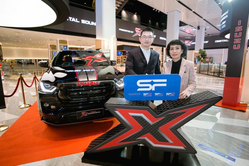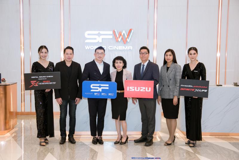 คุณปนัดดา เจณณวาสิน กรรมการรองผู้จัดการ บริษัท ตรีเพชรอีซูซุเซลส์ จำกัด และ  คุณสุวิทย์ ทองร่มโพธิ์ ประธานเจ้าหน้าที่บริหาร สายงานการตลาด บริษัท เอส เอฟ คอร์ปอเรชั่น จำกัด (มหาชน) ร่วมเปิดตัวภาพยนตร์โฆษณา Digital Sound Check ชุดใหม่ล่าสุด “INFINITE X-LIFE” ภายใต้แนวคิด “ท้าทายทุกลิมิต…สุดขีดสไตล์เอ็กซ์”  ต้อนรับการแนะนำไลฟ์สไตล์ปิกอัพรุ่นล่าสุด “ออลนิว อีซูซุ เอ็กซ์-ซีรี่ส์” ถ่ายทอดเอกลักษณ์แห่งจิตวิญญาณสายพันธุ์สปอร์ต หลงใหลในความเร็ว แรง เร้าใจ และสไตล์ที่ไม่เหมือนใคร ผ่านระบบภาพและเสียงสมบูรณ์แบบของโลกภาพยนตร์ ณ โรงภาพยนตร์ เอส เอฟ เวิลด์ ซีเนม่า ชั้น 7 ศูนย์การค้าเซ็นทรัลเวิลด์ โดยภาพยนตร์โฆษณานี้จะเผยแพร่ผ่านโรงภาพยนตร์ในเครือ เอส เอฟ ทุกรอบ      ทุกโรง ทุกสาขารวม 397 โรงทั่วประเทศ