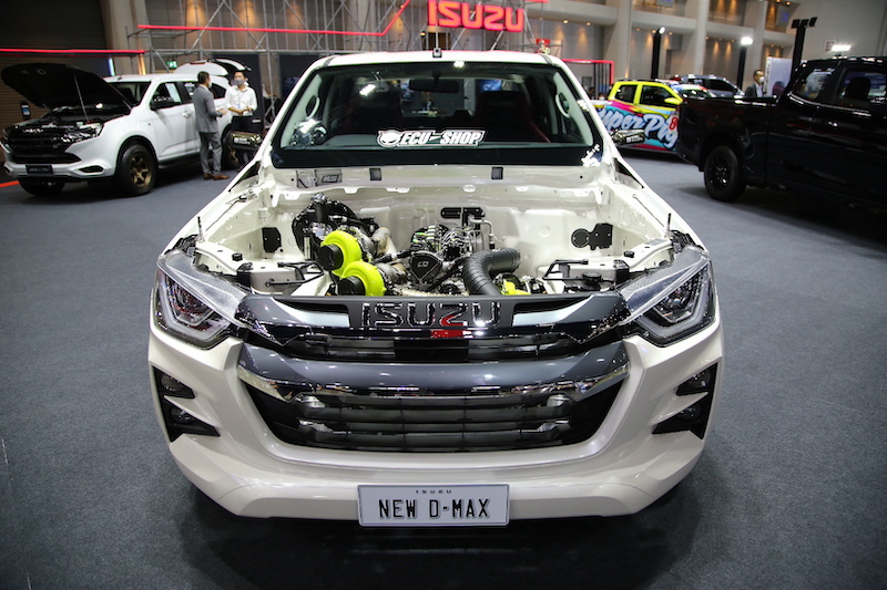 - อีซูซุดีแมคซ์ เครื่องยนต์ 3.0 Ddi Blue Power สปอร์ตปิกอัพตัวแรง จากรายการแข่งขันรถยนต์ทางเรียบ “ISUZU ONE MAKE RACE 2022” ที่ได้รับความนิยมจนจัดต่อเนื่องเป็นปีที่ 13 ตกแต่งภายนอกดีไซน์สปอร์ตรอบคันด้วย AEROPART จาก AKANA แรงเต็มพิกัดด้วยขุมพลัง 4JJ3 ติดตั้งกล่องพ่วงเพิ่มความแรงจาก ECU Shop เสริมชุดคลัชต์รถแข่งจาก BRC เฟืองท้ายแบบ LIMITED SLIP 2 WAY ให้กำลังสูงสุด 270 แรงม้า แรงบิดสูงสุด 670 นิวตัน-เมตร เสริมช่วงล่างด้วยโช้คสปริงปรับแรงดัน (Sub Tank) จาก Hot Bits เพิ่มขีดความสามารถในการเกาะถนนด้วยล้อ Lenso RD1 ขนาด 9×17 นิ้ว ยาง TOYOTIRES R888R ขนาด 255/40 R17 ท่อสูตร NITTO Header & Turbo ห้องโดยสารเสริมมาตรฐานความปลอดภัยตามแบบ FIA ด้วย Roll Cage เบาะรถแข่งและชุดเข็มขัดนิรภัยแบบ 6 จุด Sparco แป้นเหยียบเบรก พวงมาลัย MOMO พร้อมสวิตช์ตัดไฟ, เกจ์วัดบูธ และถังดับเพลิง