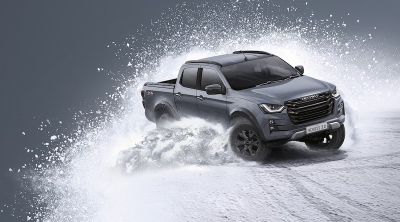 - รถธงรุ่นล่าสุด ใหม่! อีซูซุวี-ครอส 4×4 (NEW! ISUZU V-CROSS 4×4) พรีเมี่ยมสปอร์ตออฟโรดที่มาพร้อมความแรงจัด ขับสนุกเร้าใจของเครื่องยนต์ 3.0 ดีดีไอ บลูเพาเวอร์ เติมเต็มความเข้มดุสไตล์สปอร์ตทรงพลังในทุกมิติของรถด้วย ใหม่! กระจังหน้าแบบ Double Dimensions ดีไซน์แบบทูโทน สีเทาดำ และ Black Chrome พร้อมไฟท้าย ดีไซน์โทนสีเข้ม ใหม่! Front Bumper Guard สีทูโทน พร้อมชุดแต่งสีเทาดำรอบคันที่กระจกมองข้าง ราวหลังคา มือจับประตู บันไดข้าง Fender Lip, Robust Extender เพิ่มความดุดัน ล้ออัลลอยขนาด 18 นิ้ว ดีไซน์ใหม่! แบบ Robust Radius สี Matte Black ห้องโดยสารอารมณ์ใหม่ ผสานความเท่ สปอร์ต และหรูหรา ด้วยดีไซน์ High-Class & Sporty เน้นสีแบบทูโทน ดำ-น้ำตาล คอนโซลหน้าสีดำ เบาะคู่หน้าดีไซน์ใหม่ เดินด้ายสีน้ำตาลอย่างพิถีพิถัน และพวงมาลัยสัมผัสใหม่ สีทูโทน พร้อมออกแบบให้มิติห้องโดยสารกว้างขวาง โอ่อ่า แบบ Sharp Horizontal Layers คมเข้ม เล่นระดับกับแผงข้างประตู ที่เติมเต็มอารมณ์ด้วยวัสดุตกแต่งพรีเมี่ยม สี Brown Cafe และ Satin Silver เพิ่มความสปอร์ตหรู เหนือระดับไปอีกขั้น และจัดวางสิ่งอำนวยสะดวกสบายตามหลัก Usability Design เน้นการใช้งานที่หลากหลาย พร้อมระบบความบันเทิงสมบูรณ์แบบของ ISUZU Ultimate Entertainment