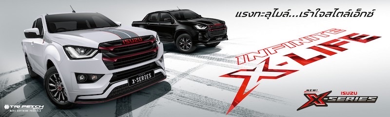 สำหรับ ใหม่! อีซูซุเอ็กซ์-ซีรี่ส์ (NEW! ISUZU X-SERIES) ยนตรกรรมดีไซน์เท่ แรงทะลุไมล์…เร้าใจสไตล์เอ็กซ์ (INFINITE X-LIFE) ขีดสุดความเร้าใจสไตล์สปอร์ตที่มาพร้อมชุดแต่งจัดเต็มสุดร้อนแรง แรงจัดด้วยขุมพลังเครื่องยนต์อีซูซุ 1.9 ดีดีไอ บลูเพาเวอร์ Gen 2 เติมเต็มพลังเรซซิ่งให้กับไลฟ์สไตล์ของคนหัวใจสปอร์ตที่พร้อมไปให้สุดแบบไม่ต้องมีลิมิต! โดยมาพร้อม ใหม่! กระจังหน้าแบบ Double Dimensions โดดเด่นสไตล์สปอร์ตด้วยดีไซน์แบบทูโทนสีดำ Glossy Black ผสานสีแดงเข้ม Garnet Red พร้อมไฟท้ายโทนสีเข้ม โฉบเฉี่ยวไม่ซ้ำใครด้วยสัญลักษณ์ ISUZU สีแดง