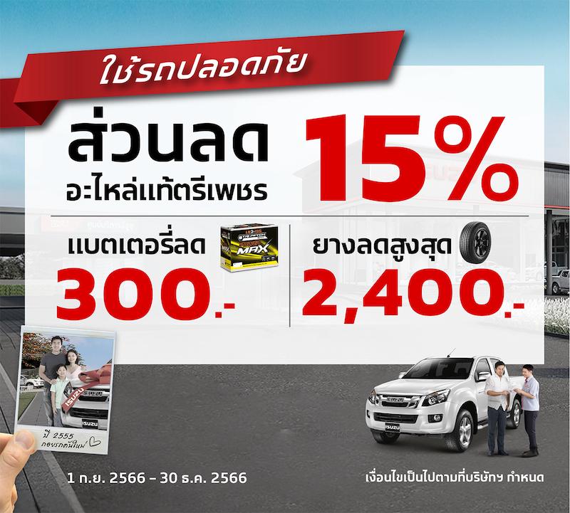 • ส่วนลดอะไหล่แท้ตรีเพชร 15% สำหรับรถปิกอัพ รถยนต์นั่งอเนกประสงค์ และรถบรรทุก