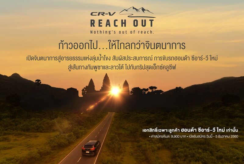 ฮอนด้า ชวนลูกค้าซีอาร์-วี ใหม่ เที่ยวกัมพูชาและลาวใต้แบบเอ็กซ์คลูซีฟ กับทริป “CR-V Reach Out ก้าวออกไป…ให้ไกลกว่าจินตนาการ”