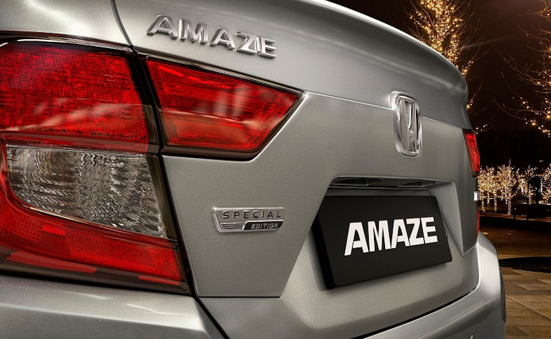 อะเมซ รุ่นพิเศษนี้ มาด้วยสติคเกอร์ภายนอกลายใหม่ พร้อมโลโก้ สเปเชี่ยล เอดิชั่น ส่วนภายในเพิ่มจอสกรีน เพื่อความบันเทิงเป็นขนาด 7 นิ้ว เปลี่ยนลายผ้าเบาะ และที่เท้าแขนด้านหน้า เลื่อนเข้า-ออกได้