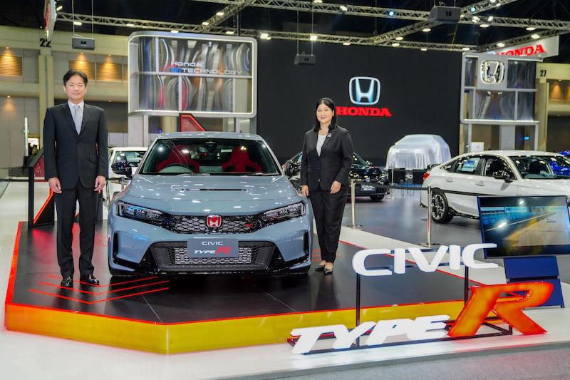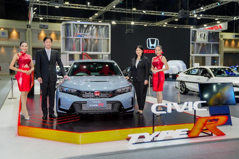 ภายในบูทฮอนด้า ลูกค้าชาวไทยจะได้สัมผัสพลังแห่งการขับเคลื่อนสู่อนาคต Honda SUV e:Prototype            รถต้นแบบพลังงานไฟฟ้า 100% ที่พร้อมนำเสนอคุณค่าด้านการขับขี่ที่ล้ำสมัย ด้วยดีไซน์การออกแบบภายนอกที่เรียบหรู การออกแบบไฟด้านหน้าเน้นเส้นสายในแนวยาวที่โฉบเฉี่ยว ภายในห้องโดยสารโปร่งโล่ง มาพร้อมหน้าจอ infotainment แบบสัมผัส Advanced Touch และหน้าจอแสดงผลการขับขี่ขนาดใหญ่ พร้อมเทคโนโลยีความปลอดภัยอัจฉริยะ Honda SENSINGและฮอนด้า ซีวิค ไทป์ อาร์ (Civic Type R) ที่สุดแห่งยนตรกรรมความสปอร์ต เป็นครั้งแรกในประเทศไทย โดยคันที่นำมาจัดแสดงมาพร้อมเครื่องยนต์เบนซิน 2.0 ลิตร VTEC TURBO ล้ออัลลอยขนาด 19 นิ้ว สามารถปรับโหมดการขับขี่ได้ 4 รูปแบบ ได้แก่ โหมด Comfort, Sport, +R และเพิ่มโหมด Individual เป็นครั้งแรกในรุ่นนี้ พร้อมทั้งเทคโนโลยีความปลอดภัยอัจฉริยะ Honda SENSINGและระบบเตือนมุมอับสายตาที่กระจกมองข้าง (BSI) สุดเอ็กซ์คลูซีฟกับ Type R Serial Number Plate