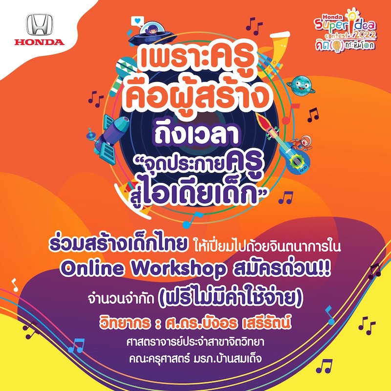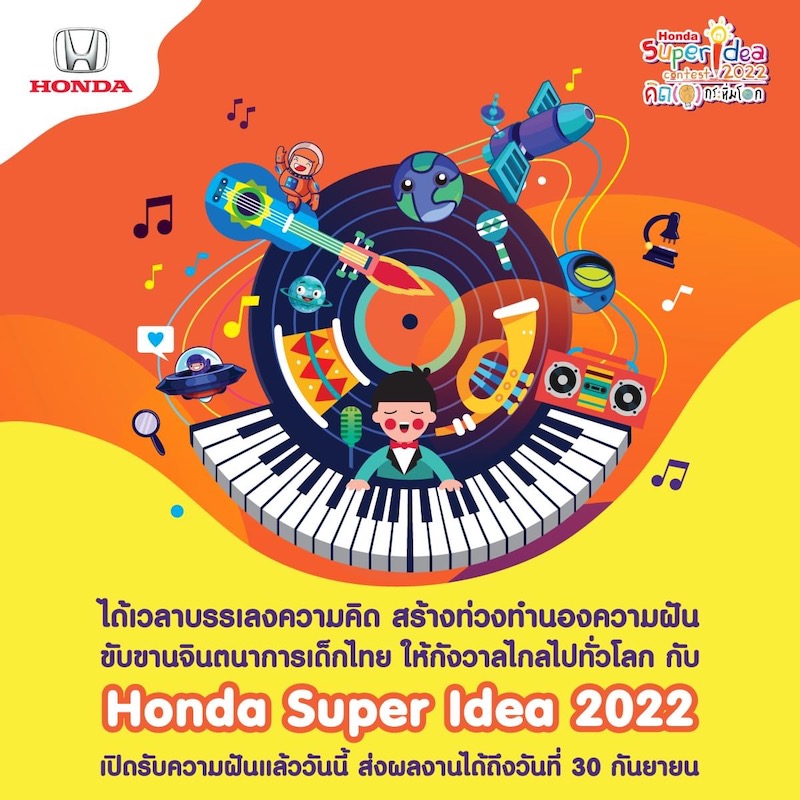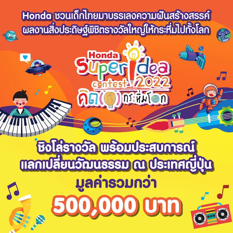 ฮอนด้า เฟ้นหานวัตกรรุ่นจิ๋ว ร่วมโครงการ “ฮอนด้า ซูเปอร์ ไอเดีย คอนเทสต์ 2022 คิด(ส์) กระหึ่มโลก” ปีที่ 18ชวนเยาวชนส่งไอเดียสิ่งประดิษฐ์สุดสร้างสรรค์และเป็นประโยชน์ต่อสังคมเปิดรับสมัครไอเดียตั้งแต่ 30 กรกฎาคม – 30 กันยายน 2565