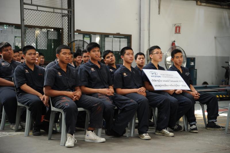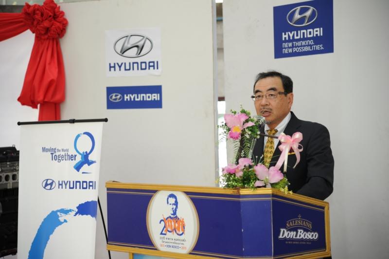 มร.ฮิเดกิ ยานากิซาวา ประธานบริษัท ฮุนได มอเตอร์ (ไทยแลนด์) จำกัด กล่าวว่า “ผมรู้สึกปราบปลื้มใจและเป็นเกียรติที่ได้มีส่วนร่วมในโครงการเพื่อประโยชน์ต่อสังคมอีกครั้ง ภายใต้ชื่อ “Hyundai for Education” ซึ่งเป็นโครงการที่มุ่งเน้นการสร้างเสริมประสบการณ์ที่ดีให้แก่เยาวชนไทย โดยเน้นส่งเสริมการเรียนรู้ของเยาวชนผ่านการพัฒนาการเรียนการสอน ที่เราได้มอบโอกาสให้นักเรียนรู้จักค้นคว้าหาคำตอบด้วยตัวเอง รู้จักการแก้ไขปัญหาต่างๆผ่านการเรียนรู้จากอุปกรณ์เครื่องมือจริง เพื่อประโยชน์สูงสุดในการเพิ่มทักษะการเรียนรู้ โดยในครั้งนี้เราได้มอบอุปกรณ์ชิ้นส่วนอะไหล่ฮุนได อาทิ เฟืองท้าย, แร็คพวงมาลัย, โคมไฟหน้า H-1, เทอร์โบ (Turbocharger), คอมเพรสเซอร์แอร์ (Air compressor), ล้อช่วยแรง (Fly wheel), เครื่องยนต์ท่อนล่าง (Engine short block) และอื่น ๆ อีกมากมาย รวมถึงชุดเครื่องมือพิเศษและเครื่องแว็กซ์-ชาร์จน้ำยาแอร์ ระบบปรับอากาศรถยนต์ ให้แก่วิทยาลัยเทคโนโลยีดอนบอสโก เพื่อนำไปใช้ประกอบการเรียนการสอนในภาควิชาแผนกช่างยนต์ ซึ่งถือเป็นโอกาสดีที่นักศึกษาจะได้สัมผัสกับเทคโนโลยีและได้เรียนรู้ถึงเทคนิคของรถยนต์ฮุนได เพื่อนำความรู้ไปเพิ่มทักษะในวิเคราะห์การทำงานของชิ้นส่วนต่างๆ และสามารถแก้ปัญหาได้อย่างมีประสิทธิภาพ โดยแผนกช่างยนต์ วิทยาลัยเทคโนโลยีดอนบอสโก จะมุ่งเน้นให้นักศึกษาได้เรียนรู้ทักษะด้านการซ่อมบำรุงรถยนต์ การปรับแต่งเครื่องยนต์ ระบบต่างๆในรถยนต์ รวมถึงงานอิเล็กทรอนิกส์ยานยนต์สมัยใหม่ ซึ่งทำให้ผมมั่นใจว่าการมอบอุปกรณ์เครื่องมือฮุนไดในครั้งนี้ จะมีประโยชน์ต่อการเรียนรู้ของนักศึกษาได้เป็นอย่างมาก”