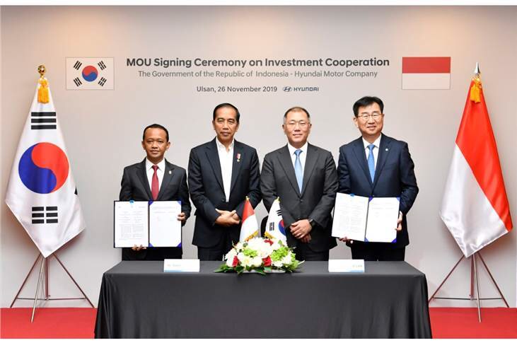 การลงนามในบันทึกความเข้าใจ กระทำที่ โรงงานฮุนได ในเมืองอุลซาน Ulsan เกาหลีใต้ โดยประธานาธิบดี โจโก้ วิโดโด้ Joko Widodo และรัฐมนตรีกระทรวงกิจการด้านเศรษฐกิจ บินมาลงนามด้วยตัวเอง ร่วมกับ วอนฮี ลี Wonhee Lee ประธานและซีอีโอ ฮุนได มอเตอร์