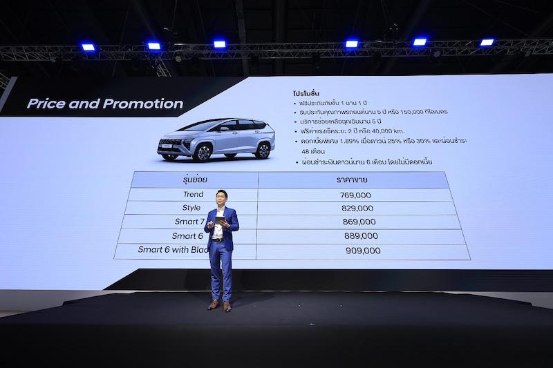 ฮุนได สตาร์เกเซอร์ พร้อมจำหน่าย 4 รุ่นย่อย ได้แก่ รุ่นเทรนด์, สไตล์, สมาร์ท 7 และ สมาร์ท 6 เปิดให้จองพร้อมกัน ณ งานบางกอก อินเตอร์เนชั่นแนล มอเตอร์โชว์ 22 มีนาคม – 2 เมษายน 2566 ณ อาคารชาเลนเจอร์ อิมแพค เมืองทองธานี